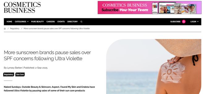 8月25日,Naked Sundays品牌在网站上发表声明称:“出于预防措施,已暂停在澳大利亚销售该产品,同时我们等待新的、完整的独立SPF结果,以及TGA(治疗用品管理局)对SPF测试调查的后续指导。”